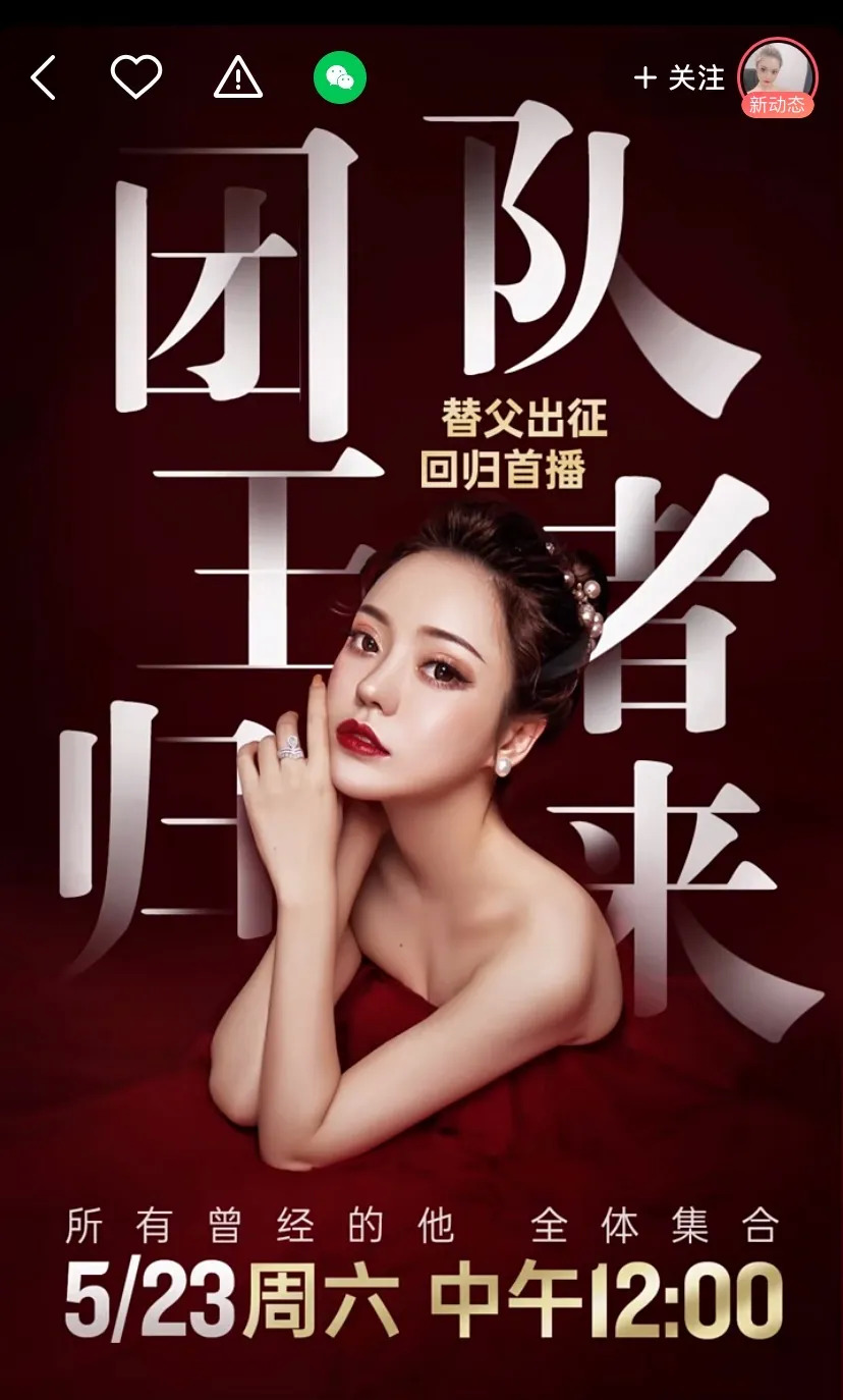 5月2日,时大漂亮在其快手号上发布了一则直播预热短片,并表示要“替父出征”。5月23日,辛巴徒弟蛋蛋再次“代父出征”,这场直播创造了3亿销售额的成绩。