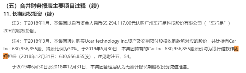 此外,根据神州优车2019年半年报显示,彼时其持有的神州租车股份已经全部质押担保给银行来贷款。