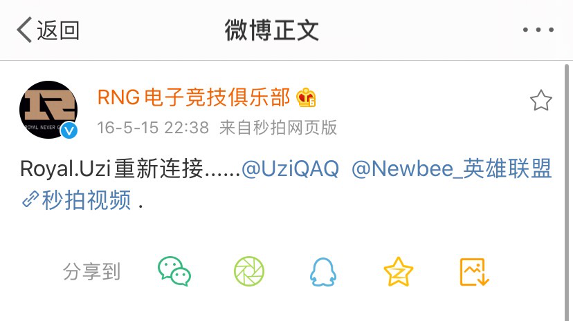 那年季中冠军赛(MSI)是RNG代表LPL出战,自然而然地,我开始关注起这支战队。也正是MSI不久后,RNG官宣Uzi加入。