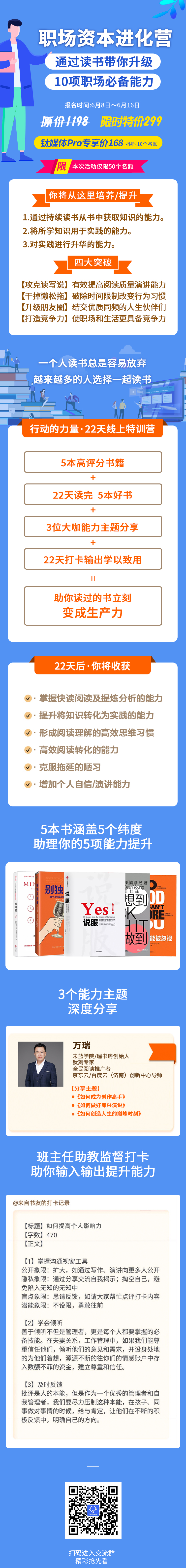 我们将5本书按照知识点进行拆分,每日会有对应的知识点展示,按照训练营安排读书学习,会看到自己读书上的巨大成长和进步。而且群里有很多牛人书友,可以互相交流,一起进步。