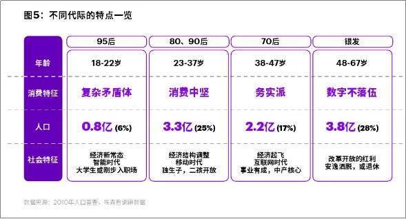 雪上加霜的是,50-70后的消费能力逐渐被80-90后所取代。尼尔森、埃森哲等咨询公司的数据显示,中国80后消费人群达2.1亿、95后群体规模接近2.5亿。