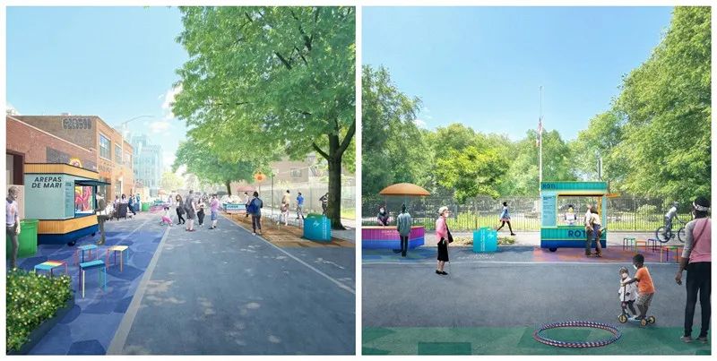 从负责这个项目的罗克韦尔公司假想图上可以看出,餐馆的外摆位未敢侵占人行道,而Food Truck的位置反而显眼。