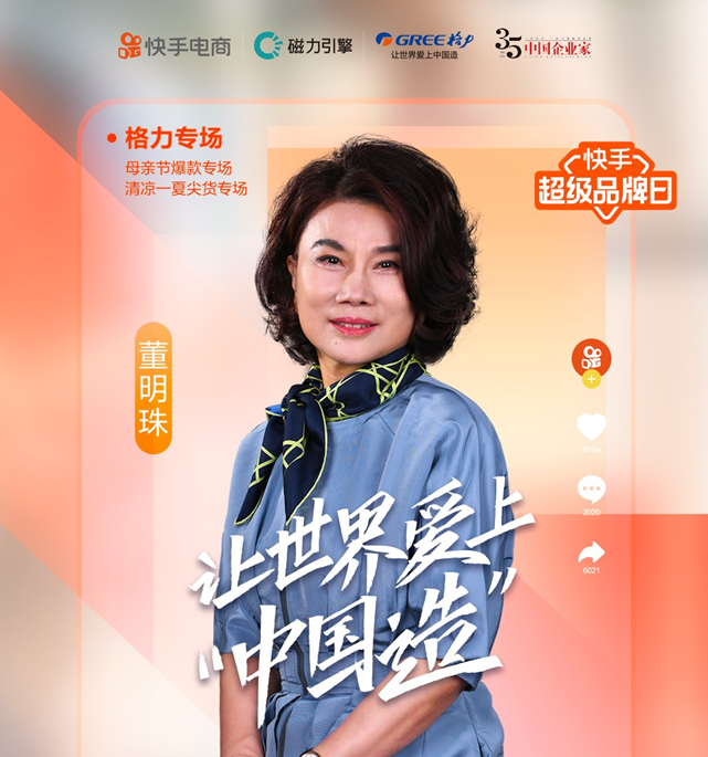 2020年5月,快手邀请格力董事长兼总裁董明珠进行带货直播,直播采用快手头部主播加董明珠的模式,创造3小时卖出3.1亿的销售记录。