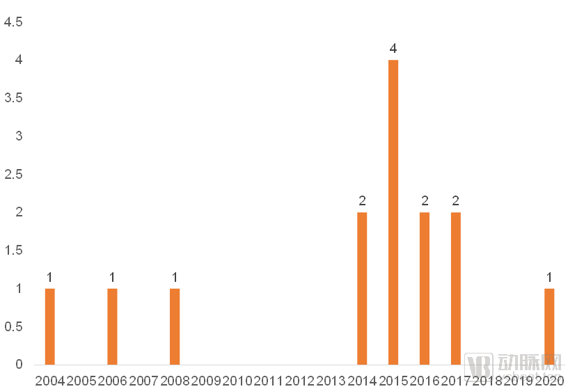 我们一共统计到相关领域的14家企业。这14家企业的成立时间主要分布于两个时段中。有三家企业在2005年前后成立,当时刚好是CRM系统的发展热潮,因此也有部分企业专注于为医药企业提供CRM产品。