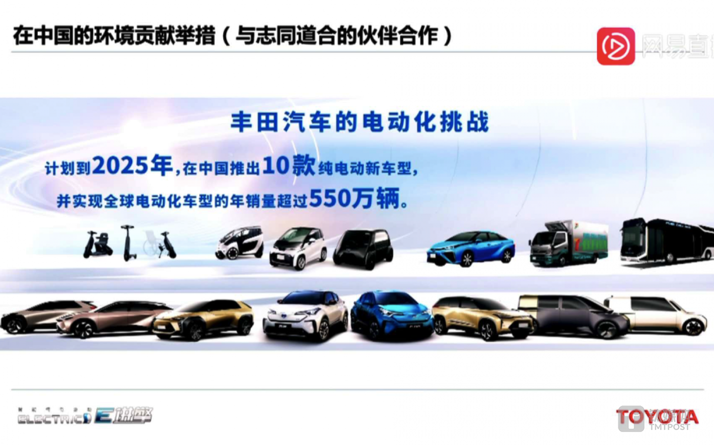 在本次活动现场,丰田也首次公布,中国市场的电动车布局战略提速,将比计划时间提早5年。在2025年前,丰田将在中国市场推出10款纯电动车型。