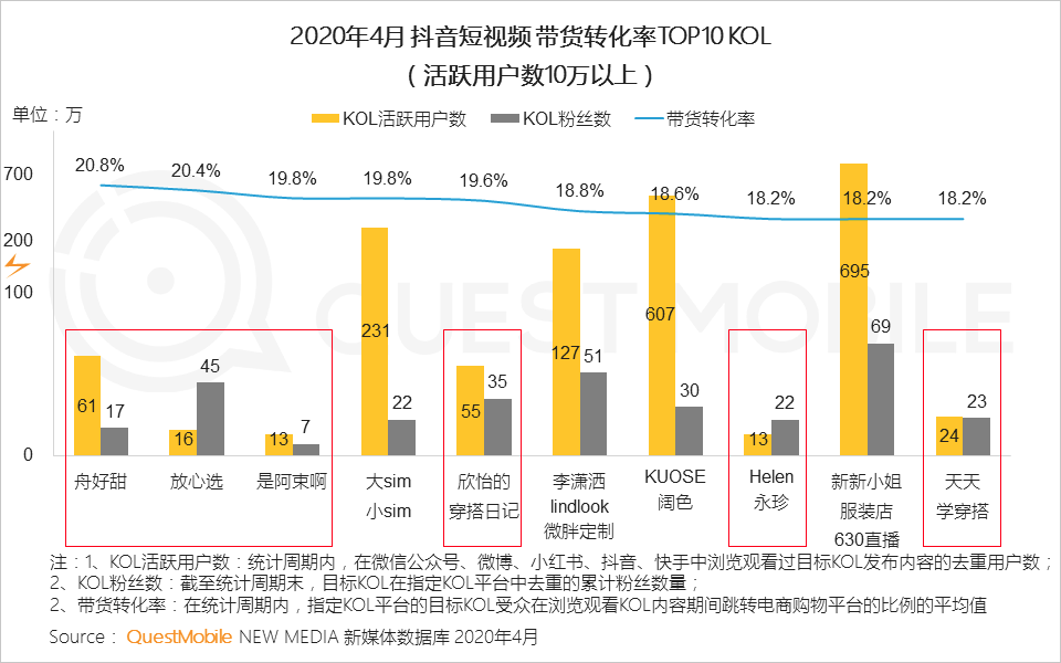 3、对于如何选取KOL,以抖音短视频平台为例,垂类中小KOL的带货转化率同样不俗,此外品牌主还可基于受众的线上行为,竞争定位适合的带货KOL