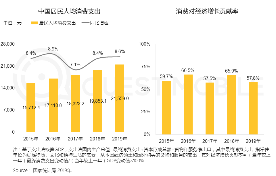 1、居民消费持续走高,反哺经济增长,消费支出成我国经济增长的第一拉动力