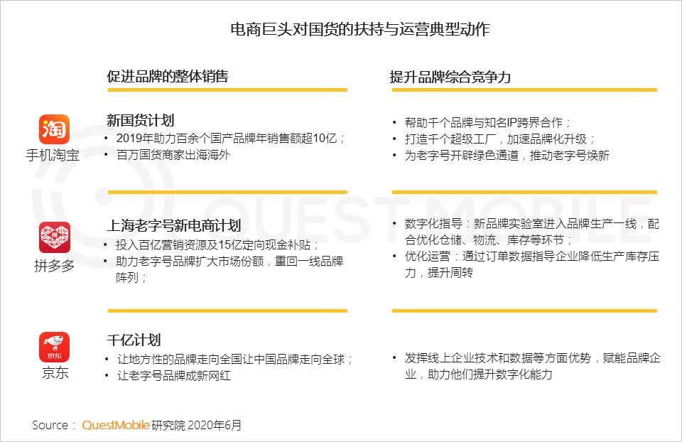 2、电商巨头不断扶持国货,推动国货消费结构性升级,另一方面,帮助国货品牌进行全链路升级,提升品牌竞争力
