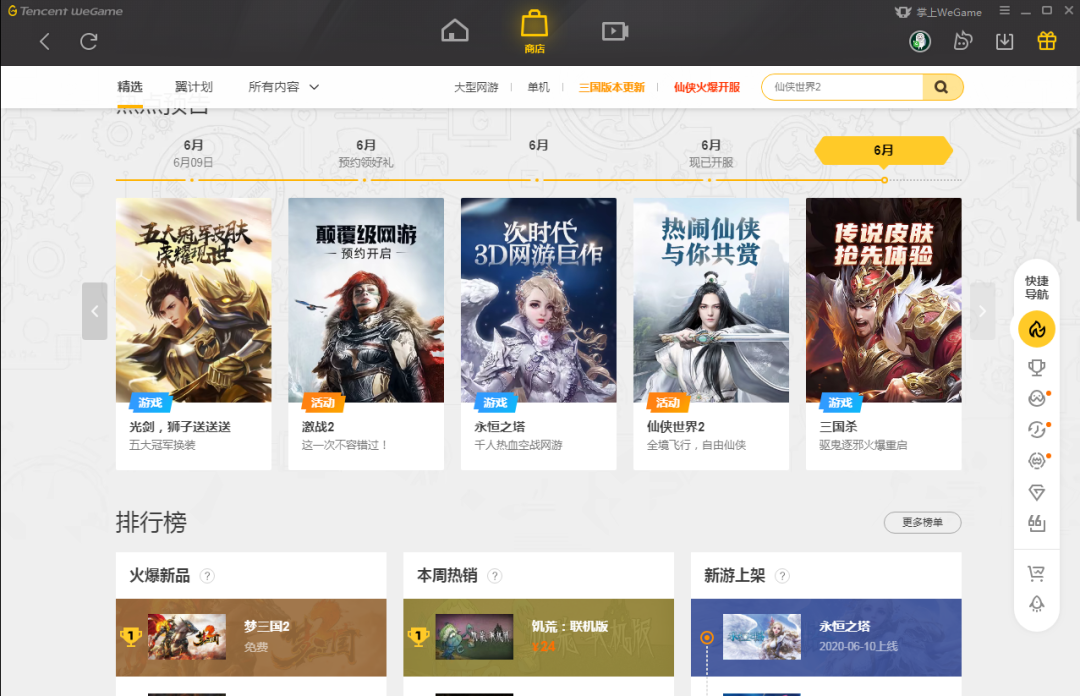 6月初,盛大游戏在2009年4月就发行的老端游《永恒之塔》正式登陆腾讯WeGame,而在此之前的5月空中网旗下的《激战2》也开放了在Wegame的预约。