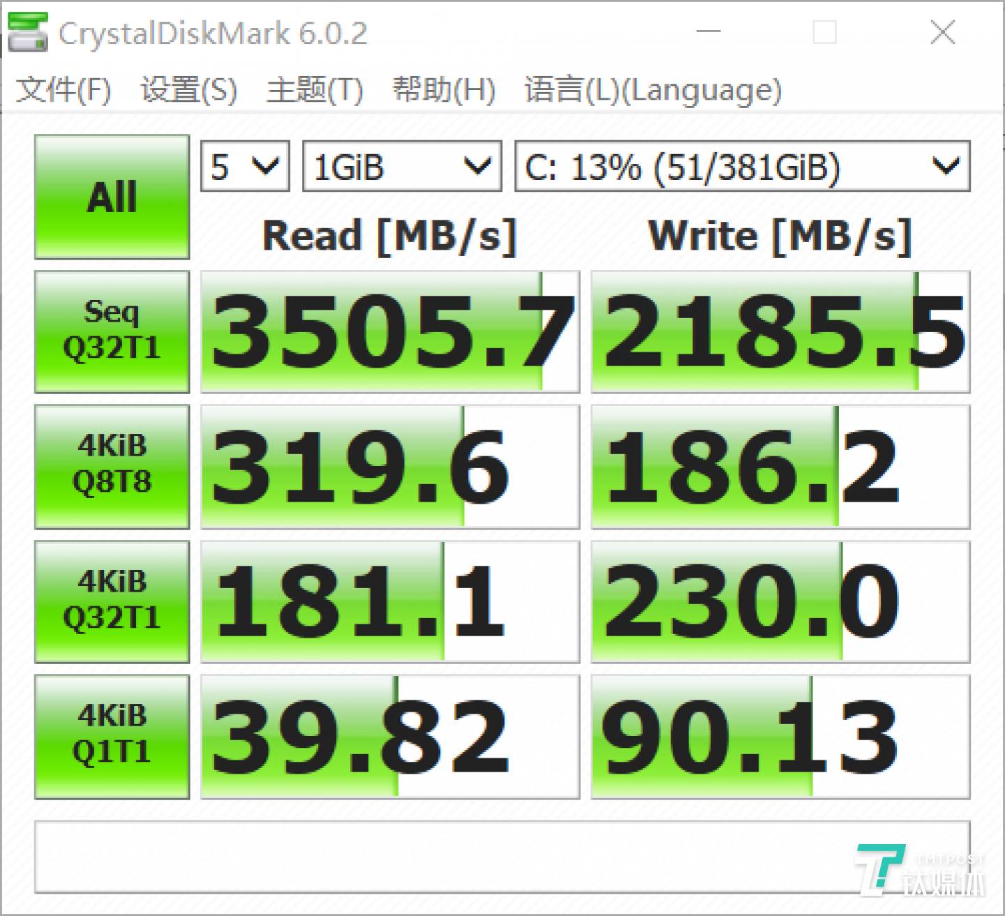硬盘规格方面,华硕灵珑II采用双插槽的设计,支持Max 2T PCIE x4 SSD,这在14英寸轻薄本中非常少见,好处就是读写速度飞快。实际测试数据显示,它的读取速度最高为3505.7MB/s,写入速度2185.5MB/s,速度非常惊人。