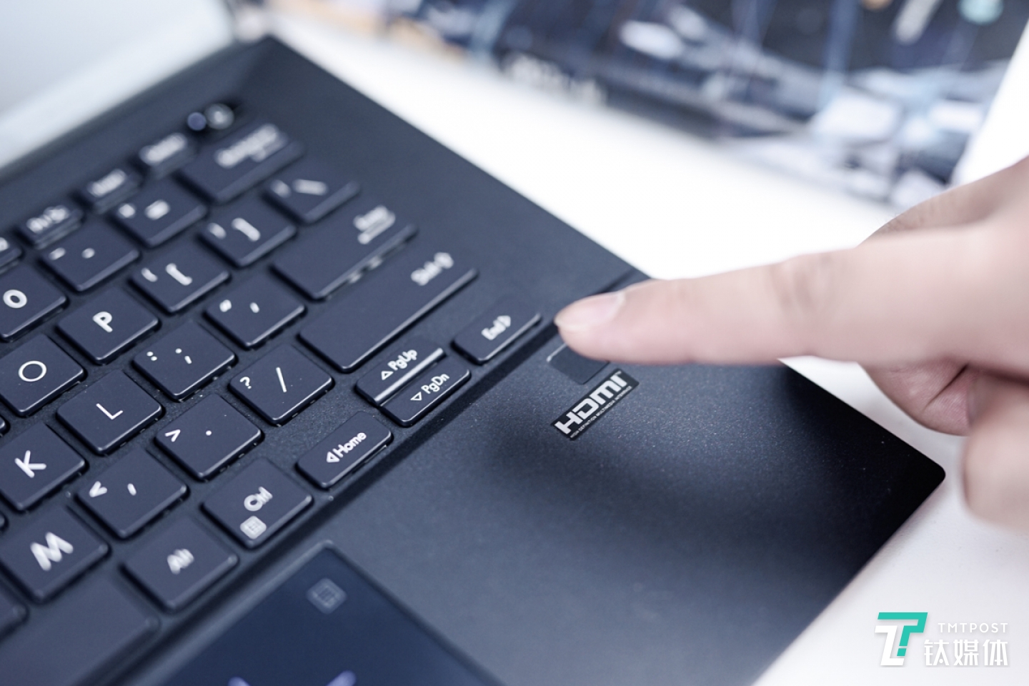 除了 NumberPad2.0 玻璃触摸板,位于键盘右下方的指纹解锁键也不可忽视,指纹解锁尽管不是什么特别值得一提的创新,但是标配到笔记本电脑这个品类中,绝对算是一个用了就回不去的配置,用来解锁笔记本效率很高。