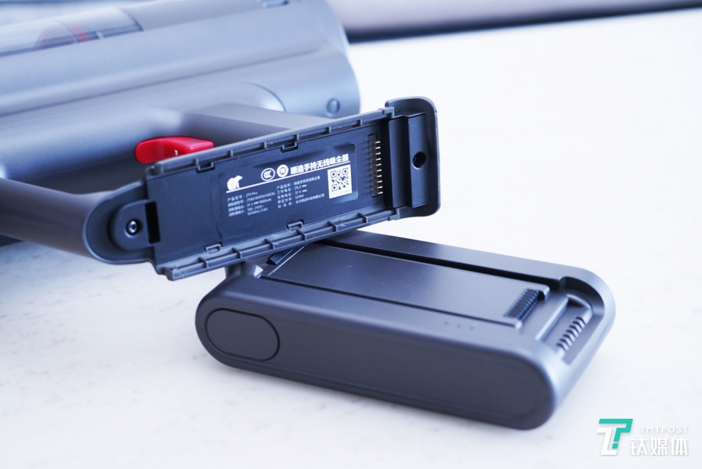 电池也被设计成了可拆卸的方式,可以方便的对电池进行单独充电,如果一块电池无法满足你的需求,你也可以另外再购入电池,不过通常情况,只要不是超大平米的清洁需求,一块电池即可满足日常使用。