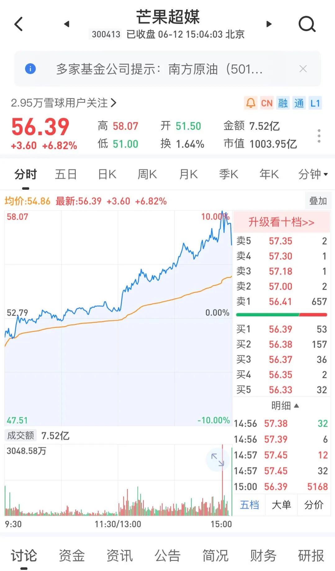未官宣,未定档,无热搜,“突袭”上线的《乘风破浪的姐姐》依旧点燃了各大社交平台,芒果超媒也在午盘后一度涨停 ,最终收盘时大涨了6.82%。