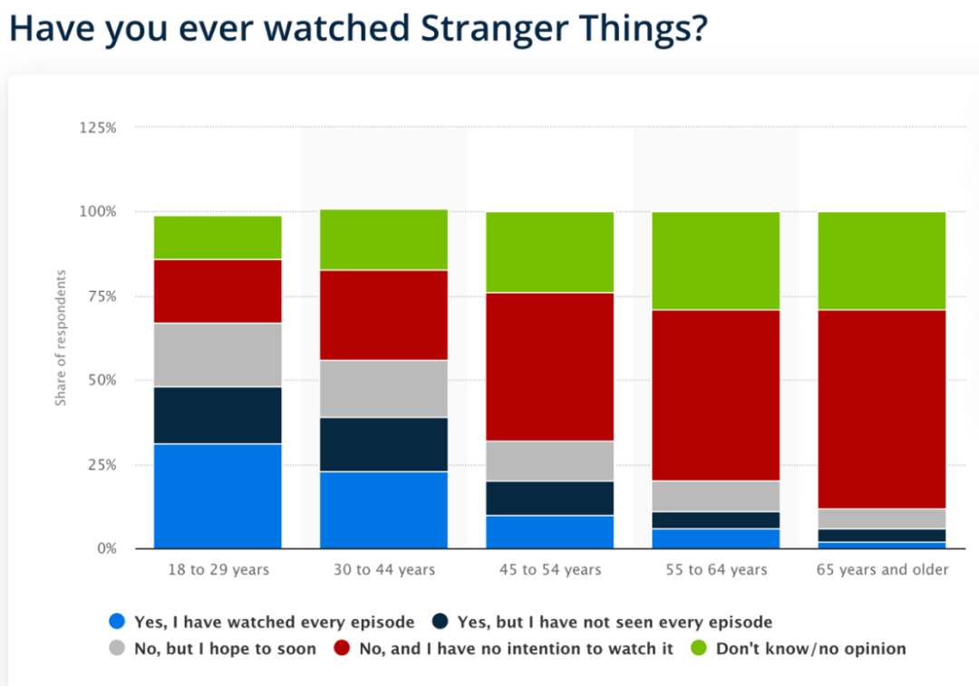 对29岁以下的人来说,有近70%的人多多少少都对《怪奇物语》感兴趣
