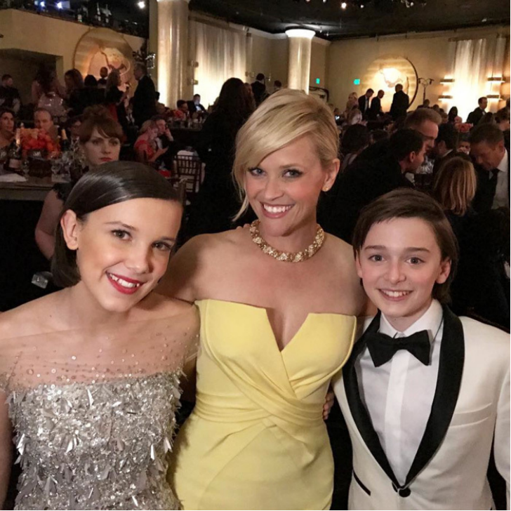 瑞茜·威瑟斯彭和《怪奇物语》小11、Will的扮演者合影