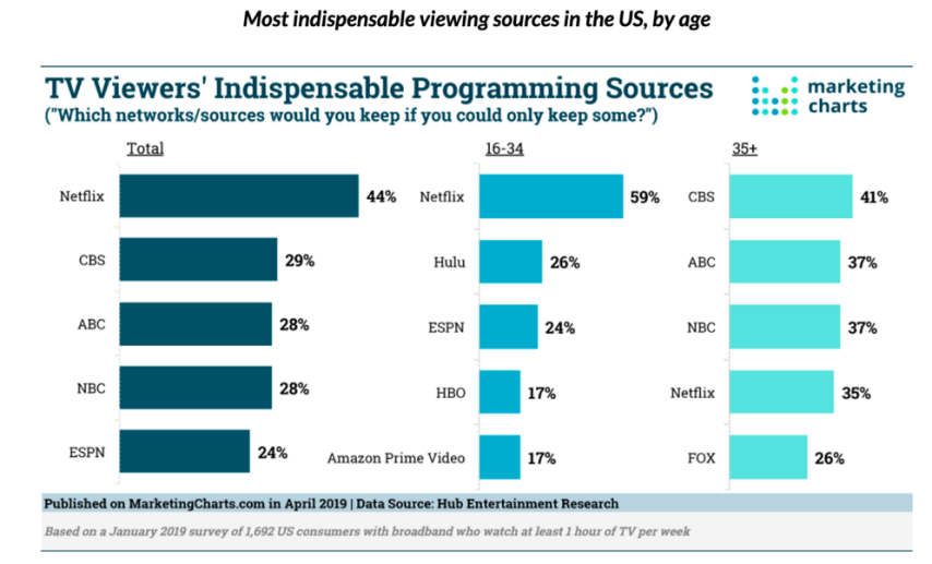 对于59%的34岁以下的人来说,Netflix是最不可或缺的