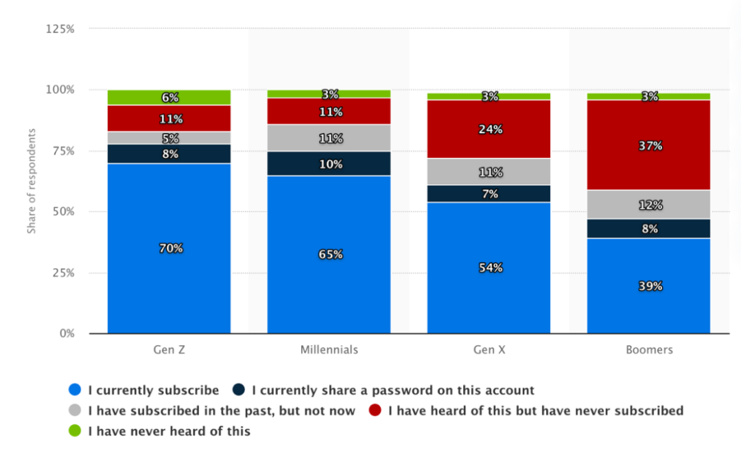 Statista 2020年5月关于Netflix在美国订阅的人群统计