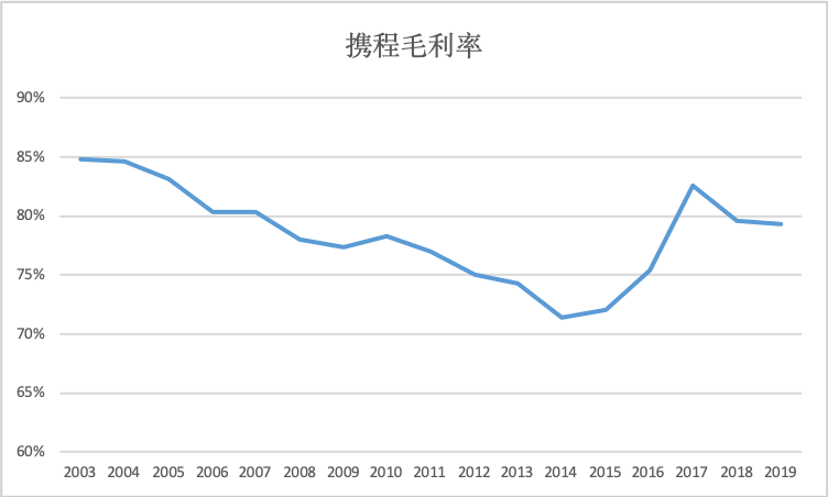 随着携程市场份额的扩大,其在上下游的议价能力得到提升,整体毛利率也迅速回升。在并表去哪儿后的第二年,携程的毛利率就回升82.5%,如今维持在80%左右,而净利率则在20%左右。