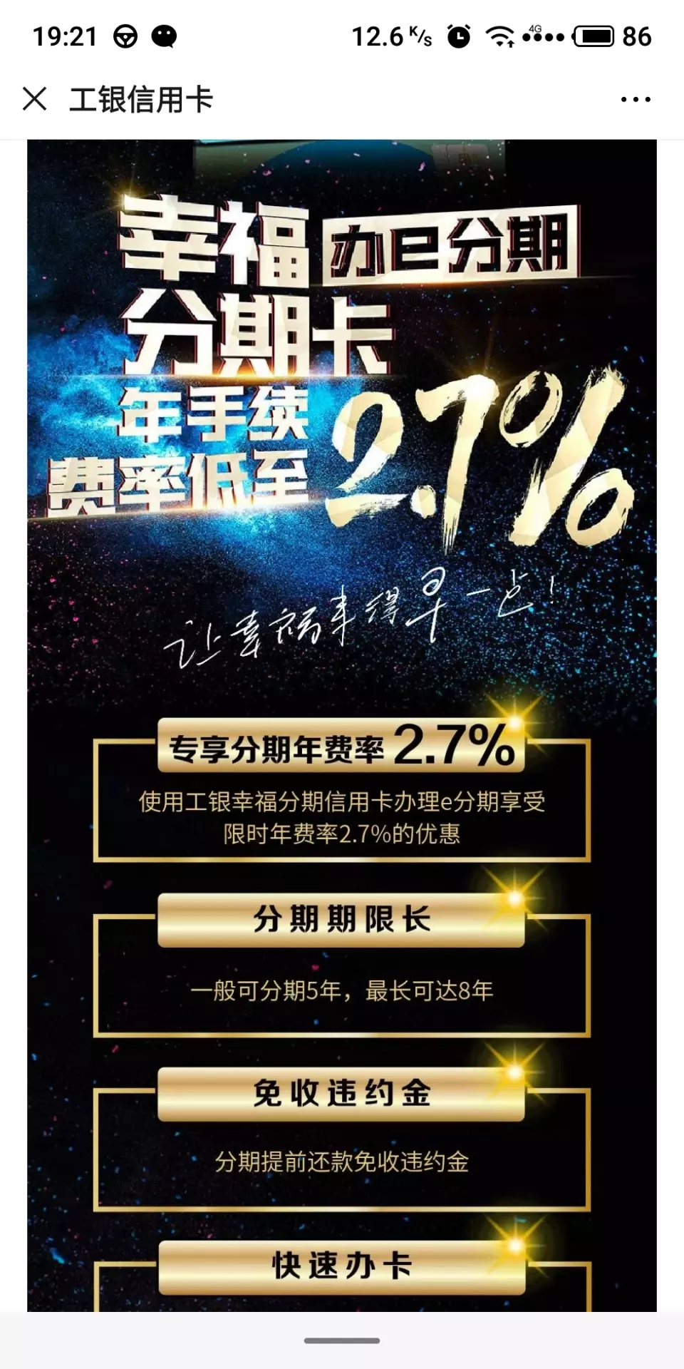 工行信用贷产品同样如此,只有使用工银幸福分期信用卡,办理e分期才能享受2.7%的年化利率优惠。