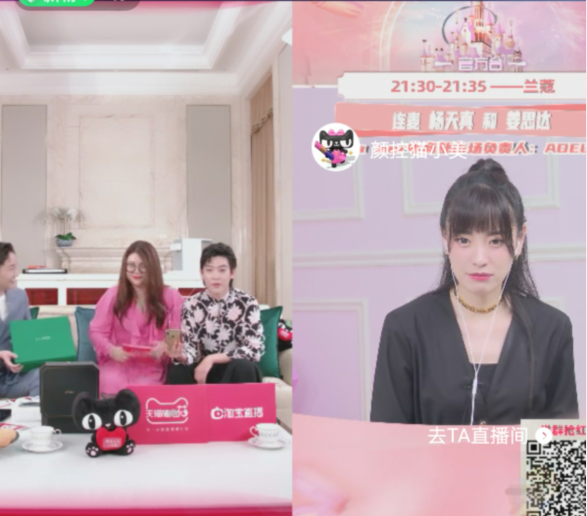 这一点在杨天真与天猫主播“颜控猫小美”连线时体现到极致。猫小美热情昂扬的语气和高语速让人瞬间回到了淘宝直播间的惯常氛围,而另一头的杨天真和姜思达则带着耳机时不时点头,偶尔窃窃私语两句。
