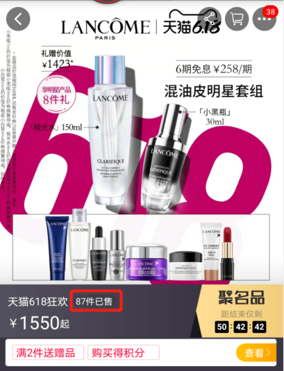 29件货品全部价格在百元以上,超过10件货品价格上千。产品中,有海蓝之谜、兰蔻极光水、雅诗兰黛套装、阿玛尼素颜霜、玫珂菲定妆喷雾、MAX美容仪等大牌护肤彩妆用品,也有迪奥墨镜、劳力士手表这样的高奢,拖把、门锁、吸尘器这样的家用产品也大多是同类型中较贵的品牌。