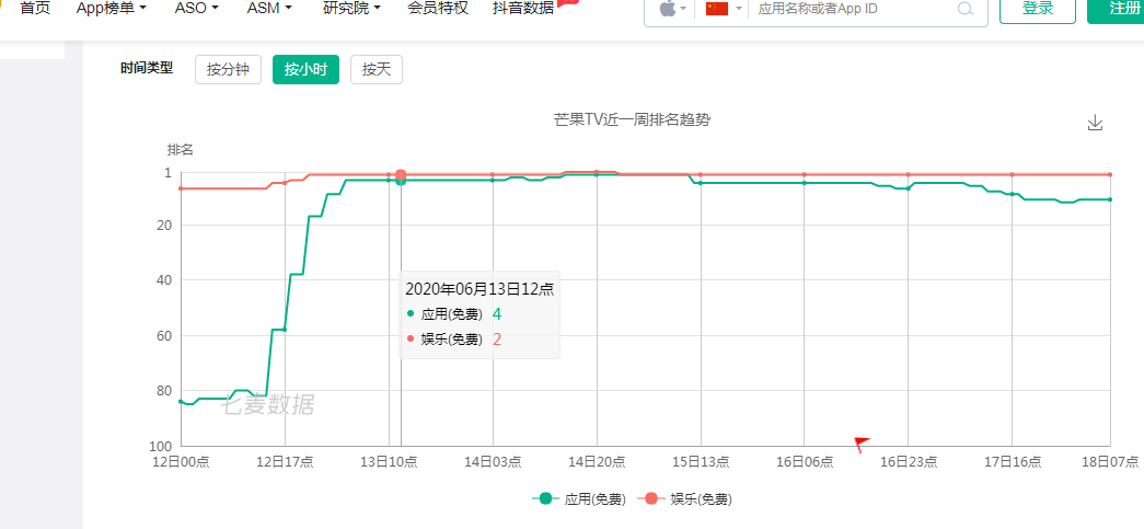 《姐姐》于6月12日中午12时上线。七麦数据显示:节目上线24小时,芒果TV跃居苹果免费APP下载应用总榜第四,上升80个名次。这一周来一度升至总榜第二,娱乐榜位居第二。