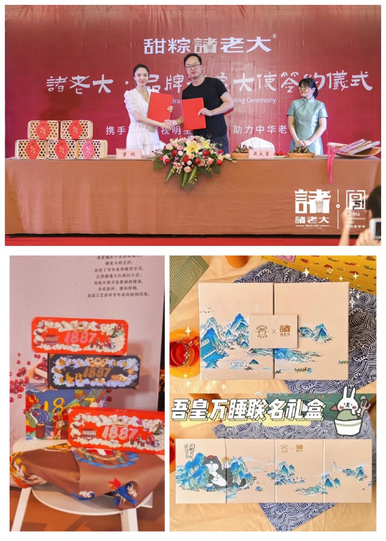 6月3日,诸老大签约董璇为品牌代言人;6月20日,诸老大新品发布会发布一系列国潮联名礼盒 | 图源:网络