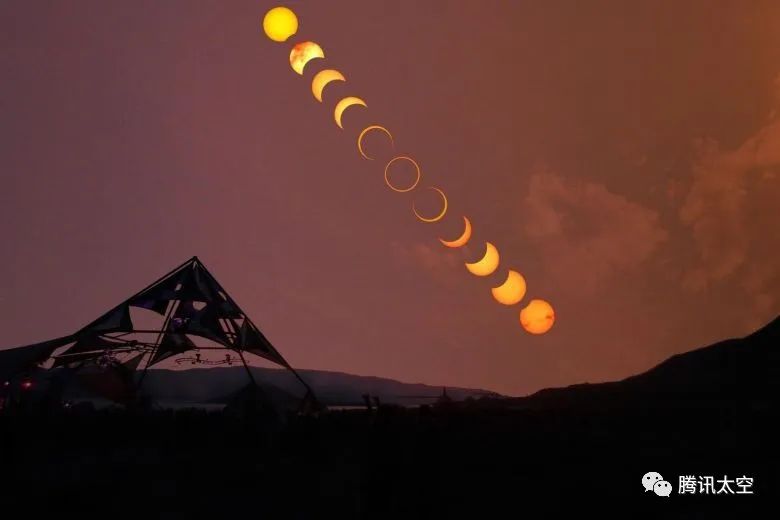 除了硕大的日食特写照片,还有一种叫“葫芦串”的照片。这种需要用三脚架来固定好专业相机,每隔一段时间拍摄一张照片,后期可合成出日食的全过程。