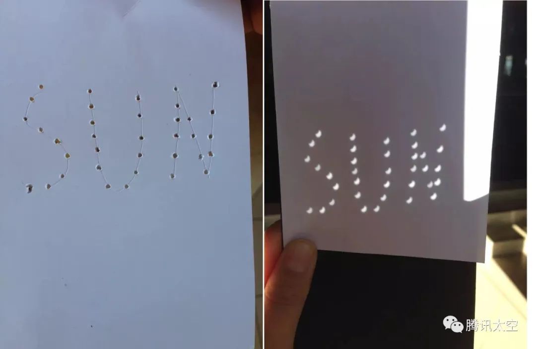 3、小孔成像:这个方法可操作性最强,随手在硬纸板上钻几个小孔就可欣赏日食了。