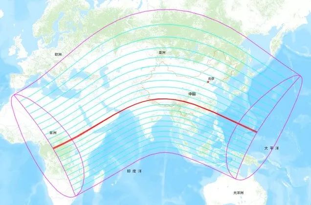 图注:图中深红色线压到的部分是本次环食带,本次环食带较窄,仅20公里。紫线围住的区域都能看到不同程度的日偏食。