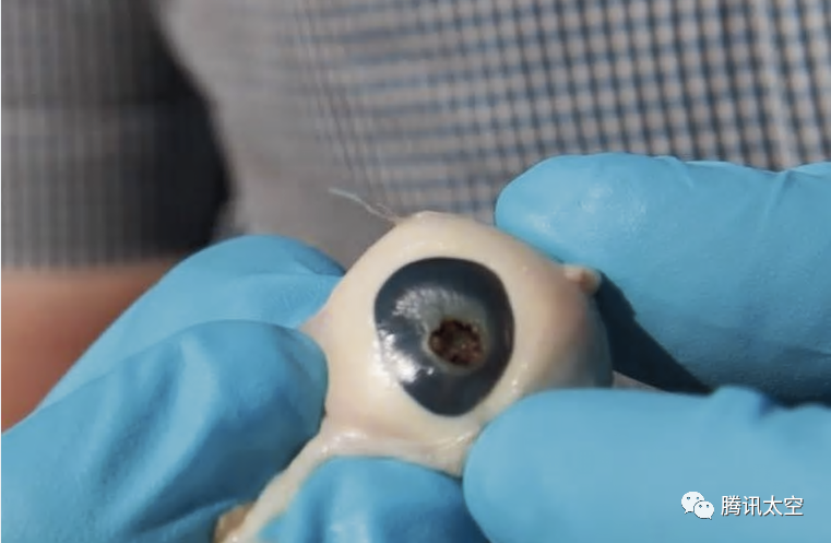 图注:被没有加滤光片的望远镜烧坏的猪眼。