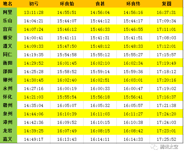 我国境内可以观测到日环食的有西藏、四川、重庆、贵州、湖南、江西、福建、台湾等地的部分地区。每个地区看到的时间各不相同,自西向东依次延后。当然,前提是要有一个好天气。