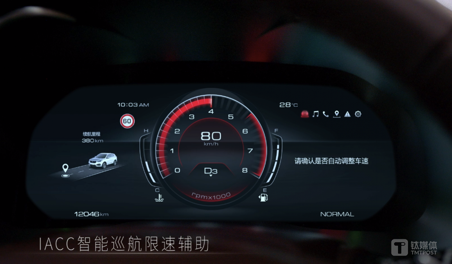 新增的IACC智能巡航限速辅助,融合TSR交通标志识别功能,依据道路限速信息提示用户自动限速,并能在全速域范围内实现自动跟车巡航。