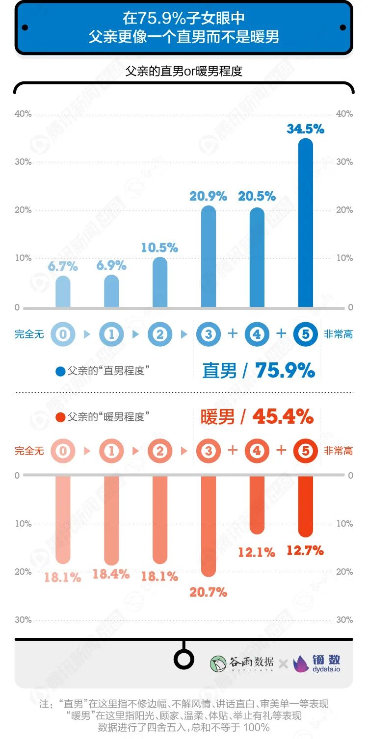 超过四分之三的子女心中,父亲更接近不修边幅、不解风情的直男形象。