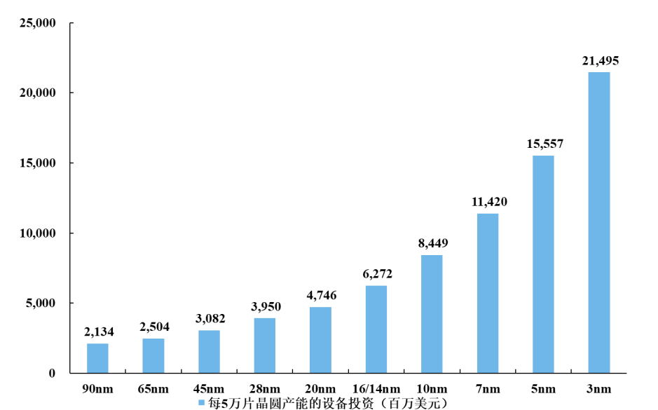 第三方咨询机构IBS报告显示,随着工艺制程不断升级,企业研发成本应声提高,基本维持每两代工艺研发成本提升100%的幅度前进。作为行业领先者,台积电每向前一步,脚下铺就的都是海量的金钱。
