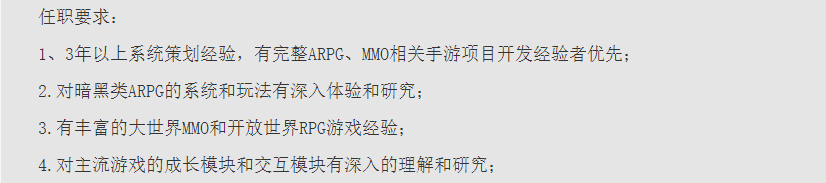 从公司招聘信息来看,目前西腾科技对系统策划的要求为“对暗黑系ARPG的系统和玩法有深入体验和研究”等,还包含了对MMO开发经验的要求。