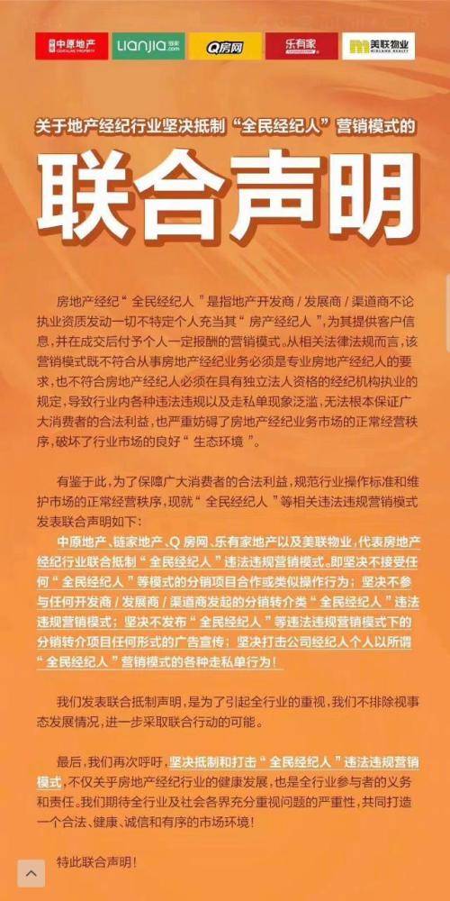 近日,深圳五大房产中介机构联合发布声明,坚决抵制“全民经纪人”营销模式。