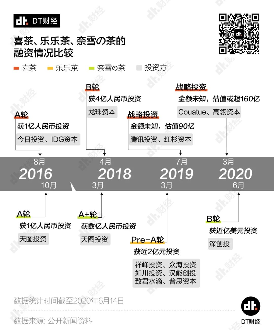 目前,资本市场也给出了一些认可。从融资信息来看,喜茶目前的投资金额相较奈雪、乐乐茶都更加充沛。从A轮到后期的战略投资,投资方包括IDG资本、腾讯、红杉资本、高瓴资本等知名投资机构。在今年最近的战略投资中,喜茶甚至被估值超过160亿。