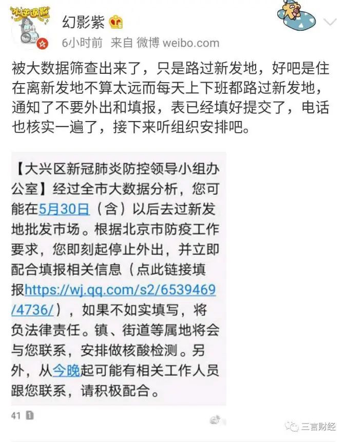 和他一样,本非高危人群却被通知做核酸检测的还有被运营商大数据锁定的与新发地产生关联的几十万人。