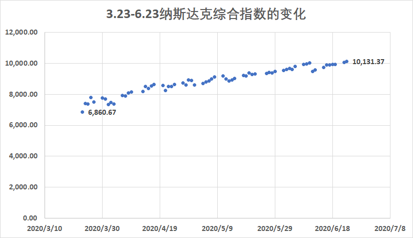 在美国科技股大涨的带动下,纳斯达克综合指数较前一日上涨0.74%,达到10131.37点。与3月23日6860.67点相比,3个月间,纳斯达克综合指数涨了3000多点。
