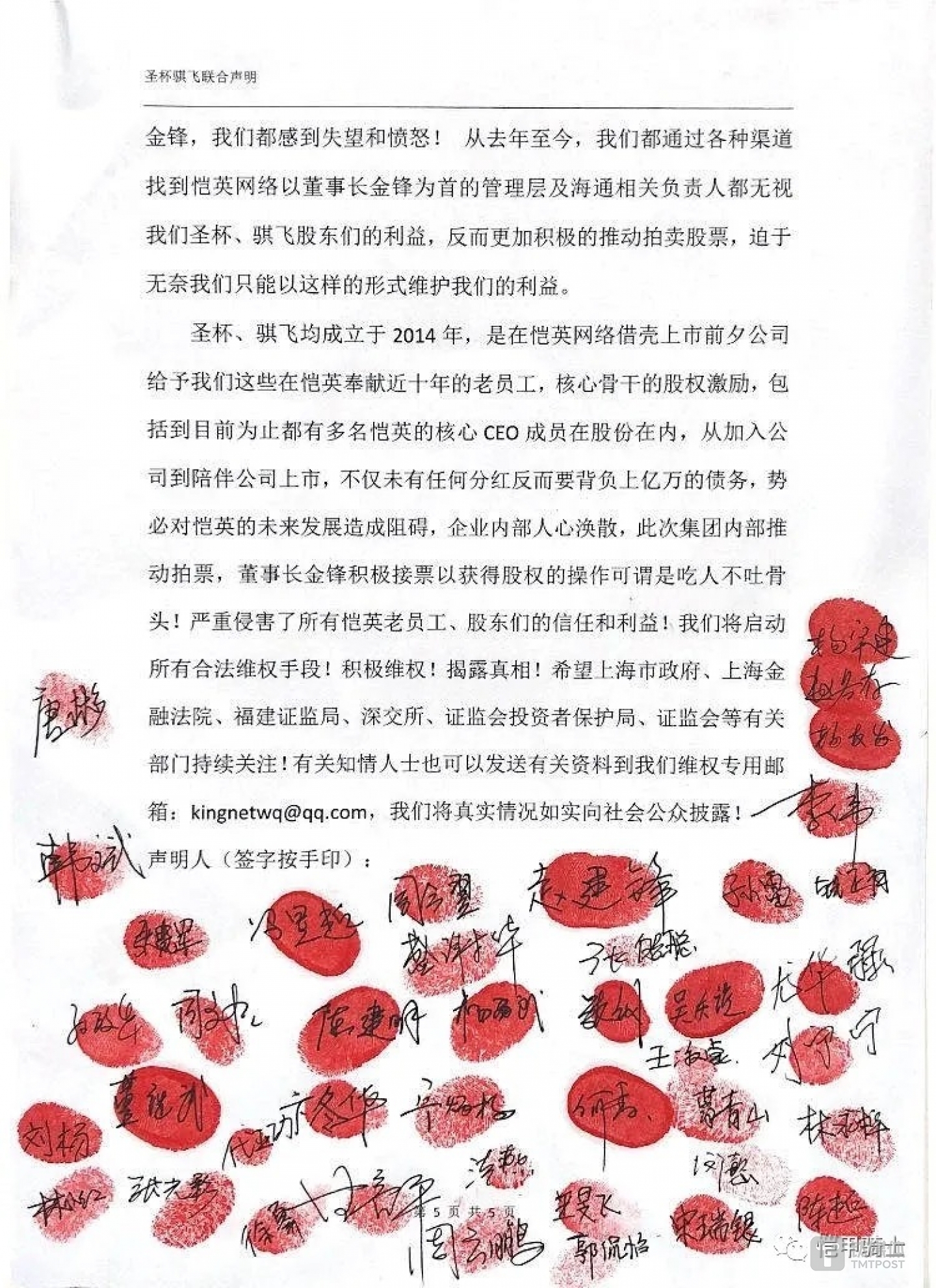 4. 对于现任恺英网络董事长金锋一次性全盘低价接下圣杯股票的行为没有进行任何公告,不对广大股民及时披露,没有说明巨额资金的来源,我们要求严查金锋资金的来源,作为上市公司的董事长如果无法说明购票资金的来源,应当涉嫌巨额资金来源不明罪,不排除非法敛财、帮助上游犯罪洗钱的重大嫌疑!