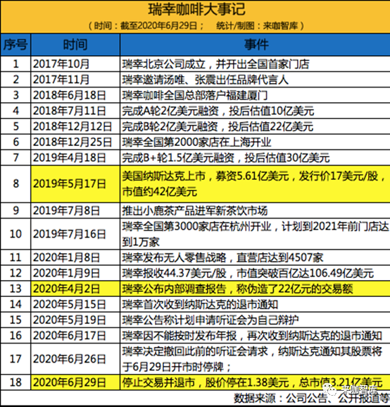 作为星巴克的挑战者,来咖智库特别梳理了一份瑞幸咖啡的大事记(如下图所示),真可谓是成也“快”,败也“快”。