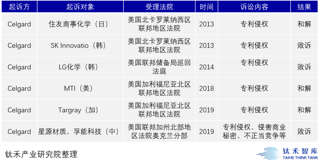 Celgard公司历史诉讼案