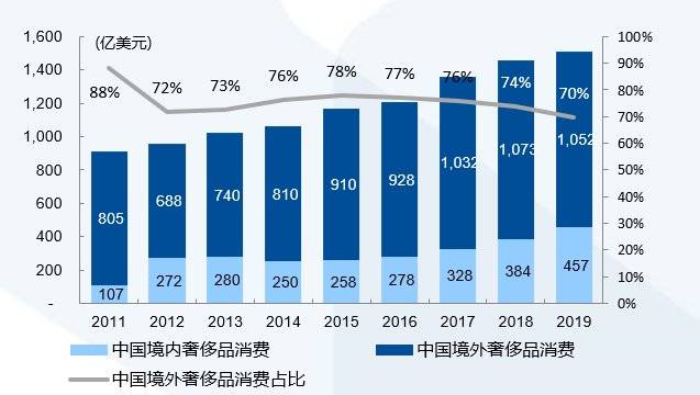 2019年,中国个人奢侈品市场规模突破1500亿美元,但这其中,有七成以上的购买是在海外。