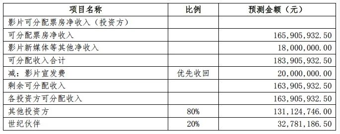 据回应透露,北京文化投入5444.58万元占有该片20%的投资份额,也就是说该片的成本约为2.72亿元。下表中显示,影片还有2000万元宣发费用。