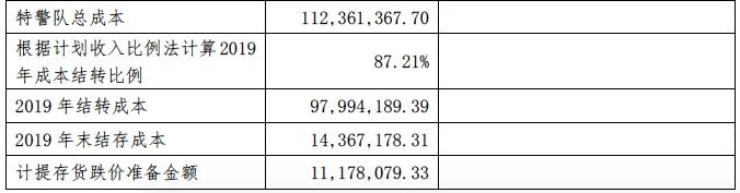 于2019年12月27日上映的《特警队》,总成本约1.12亿元,据猫眼专业版统计总票房约为5710.1万元,北京文化承担1117.81万元亏损。