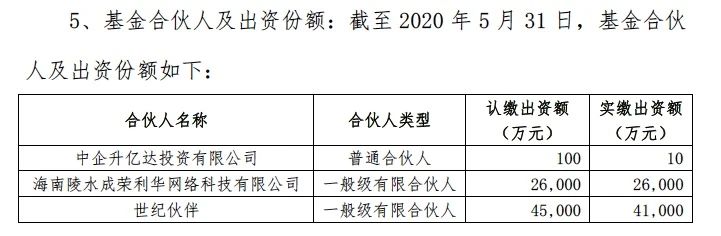 娄晓曦曾在举报信中称公司通过舟山嘉文喜乐股权投资合伙企业成立的基金,借这两个项目向北京文化输送业绩7800万元。而世纪伙伴正是这支基金的一般有限合伙人,出资4.5亿元。