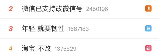 而就在所有人都还沉浸在可以更改微信ID的“惊喜”中的时候,淘宝不声不响的在官方微博发布了两个字“不改”,随后相关内容也迅速登上热搜。