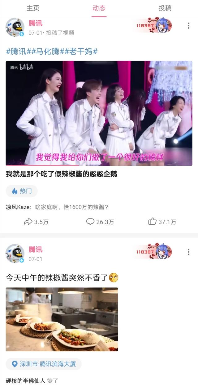 在这次企鹅被骗事件发酵之后,腾讯的首次回应是在B站;而当腾讯跟进发布二次回应的时候,首发平台仍是B站,并且其回应的内容采用的是魔改杨超越的发言,这也是典型的B站风格。