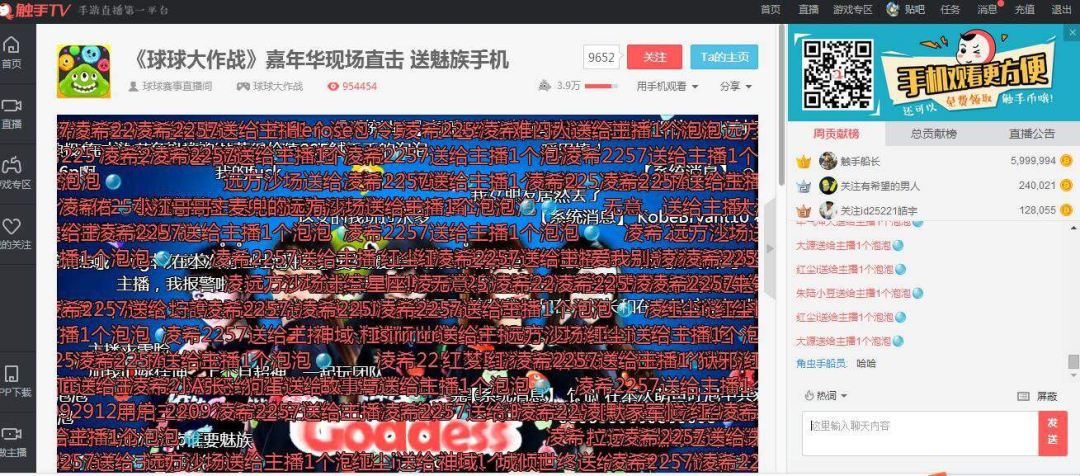 仅用了两个月,触手直播在线主播数就超过了1000名。2016年07月中旬,触手直播的DAU超过了700万,其中50%来自《球球大作战》的贡献。2016年11月,《球球大作战》DAU突破2000万,随后触手花1200万元拿下《球球大作战》全球总决赛独家网络直播版权。
